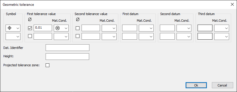 c) Select an symbol for the material condition (optional). - Enter a Datum identifier (optional).