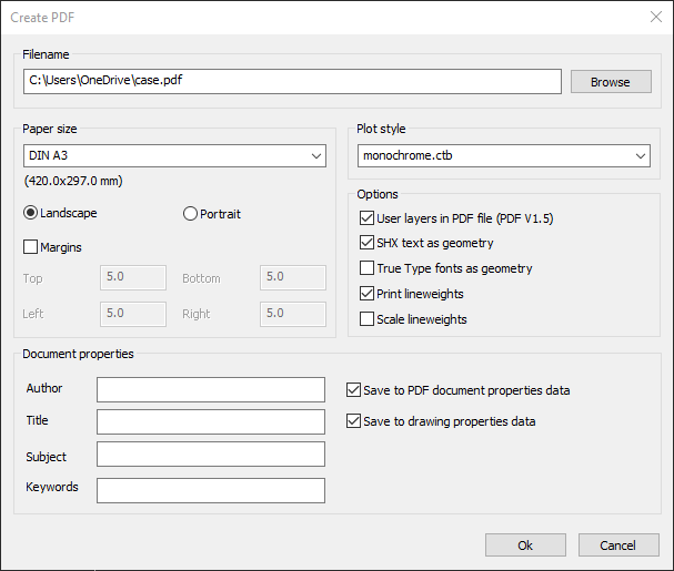 How to create a PDF document of the drawing:
