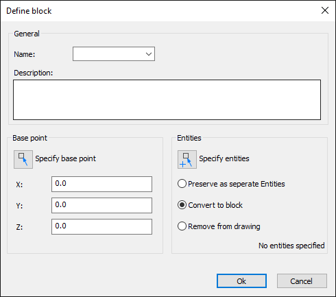 Remove from drawing: The selected drawing elements are removed from the drawing. - Enter the coordinates X, Y, Z of the base point in the dialog box.