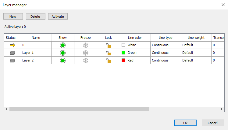 With the help of the Layer manager you can define the layer structure and the properties of the individual layers.