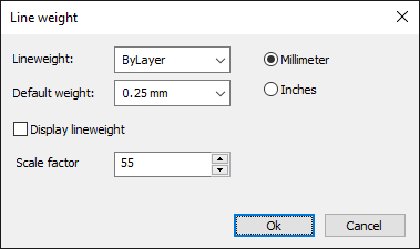 - Enter a scaling factor (in%) for displaying the line width in the graphics area.