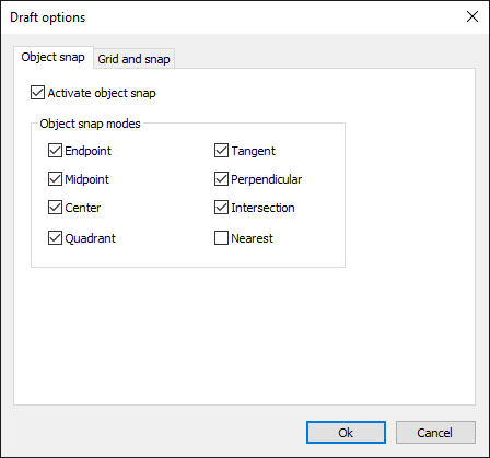 - In the dialog box, click the Object Snap tab.